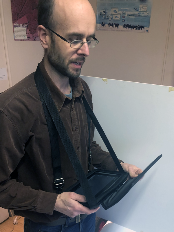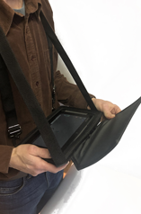 Harness for easy computer carrying with the protective cover and stylus holder. The user can keep hands free.